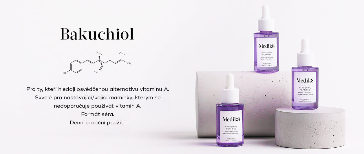Jedna z nejskloňovanějších ingrediencí současné péče o pleť, bakuchiol, si právem získává pozornost celé kosmetické scény – a to díky nedávné studii publikované v časopise British Journal of Dermatology. Jeho omlazující účinky jsou srovnatelné se zlatým standardem v anti-age péči – retinolem – a klinicky je prokázáno, že bakuchiol je skutečně účinnou (rostlinnou) alternativou vitaminu A. My v Medik8 jsme ale, jak je naším zvykem, posunuli bakuchiol na vyšší úroveň. Představujeme naši nejnovější inovaci s obsahem peptidů: Bakuchiol Peptides.