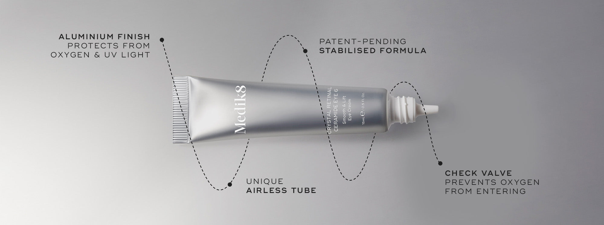 Medik8 have managed to create a revolutionary form of vitamin A targeting under eye fine lines, wrinkles and hyperpigmentation -without a prescription or sensitivity.