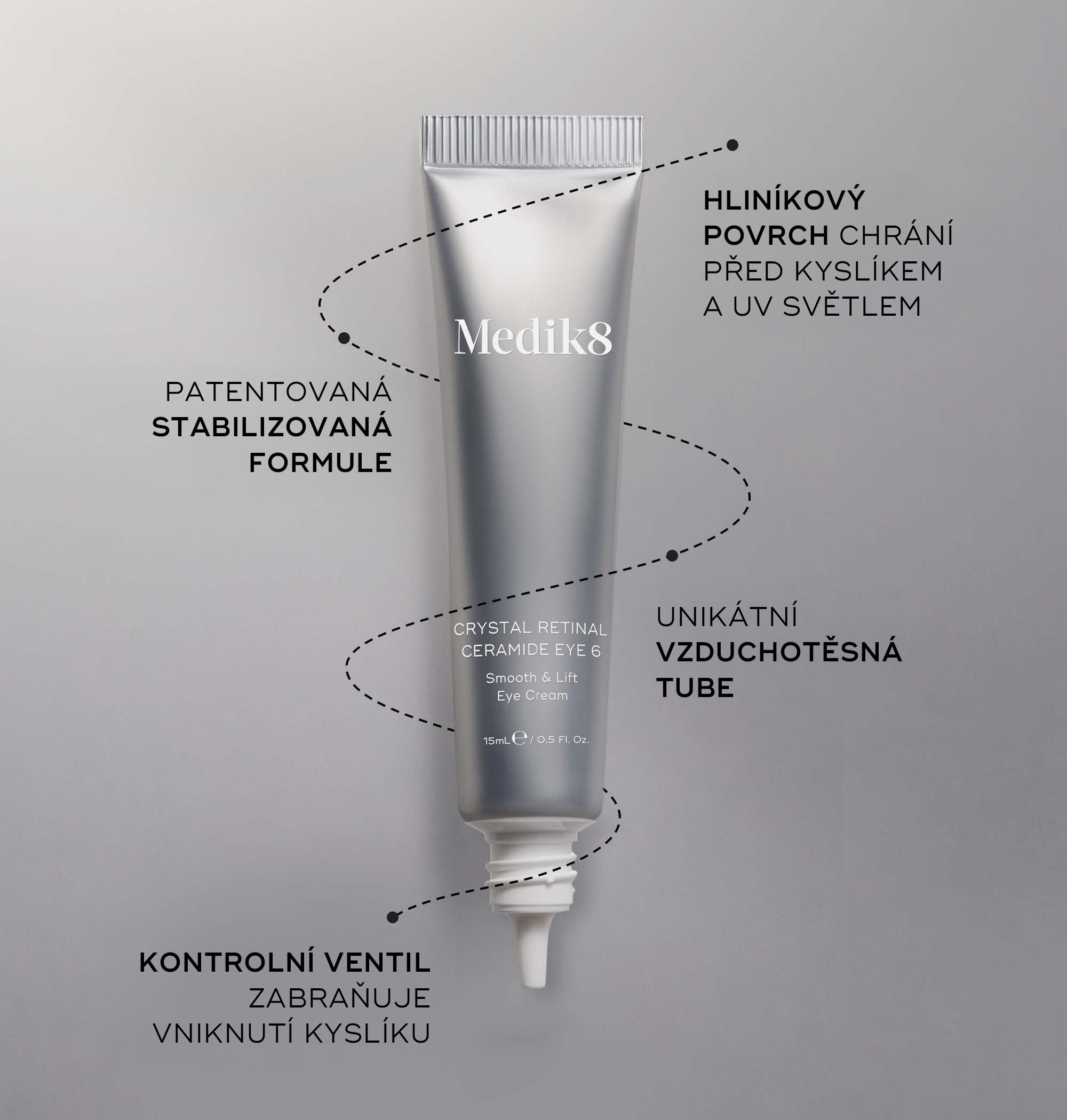 Nejnovější inovace s vitaminem A od Medik8 prokázala v klinických i spotřebitelských studiích viditelné vyhlazení, rozjasnění a výživu očního okolí. Produkt je zároveň dermatologicky i oftalmologicky testován.