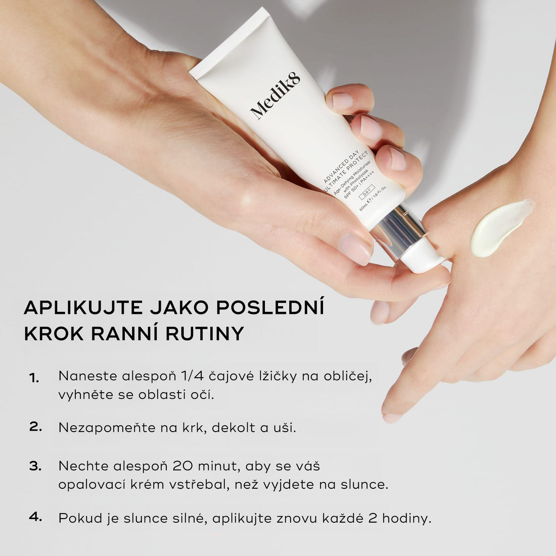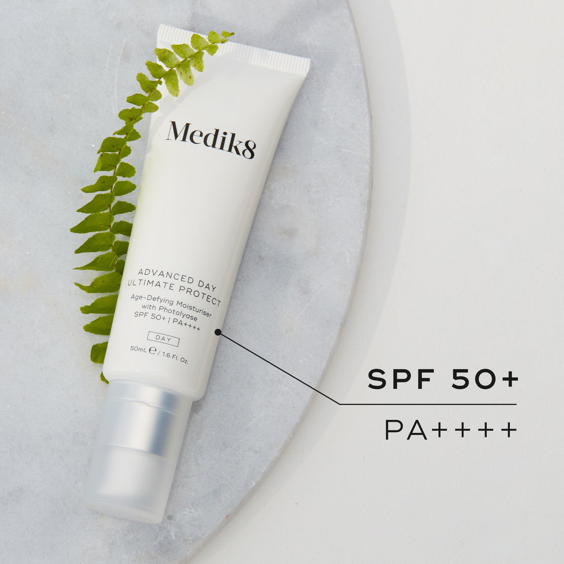 Všechny opalovací krémy Medik8 nabízejí vysoké SPF i širokospektrální ochranu. Naše řada Advanced navíc splňuje nejvyšší 5\* hodnocení Ultra UVA ochrany a Advanced Day Ultimate Protect poskytuje i maximální ochranu PA++++.